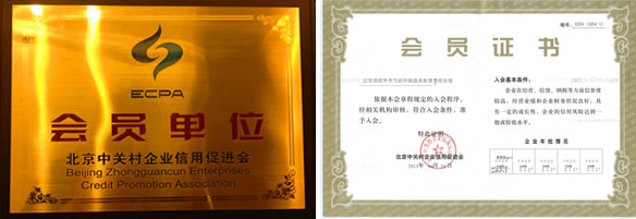 2013年4月24日,我公司憑借在經營、信貸、納稅等方面較高信譽度、良好的企業經營業績和財務狀況,順利通過中關村企業信用促進會審核,正式成為北京中關村企業信用促進會的會員企業。
